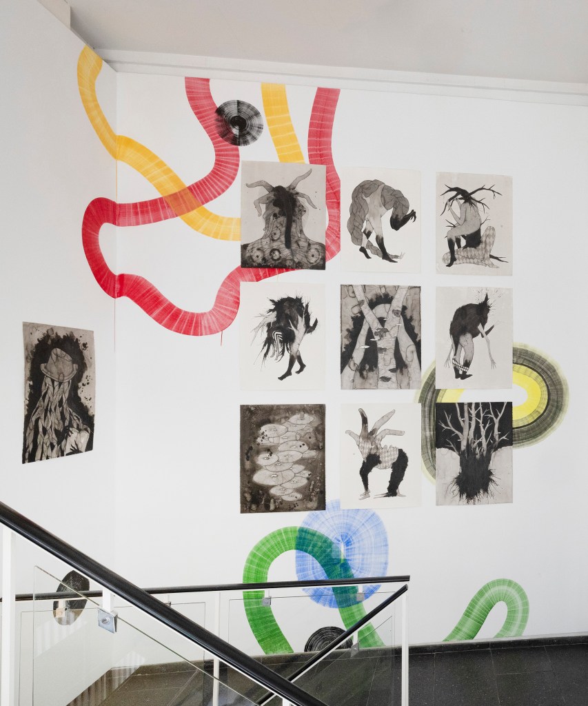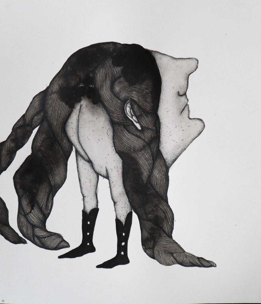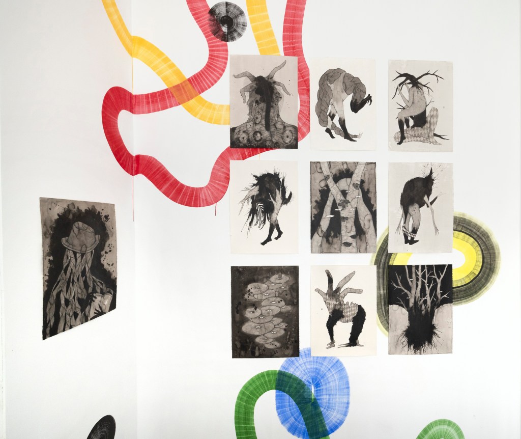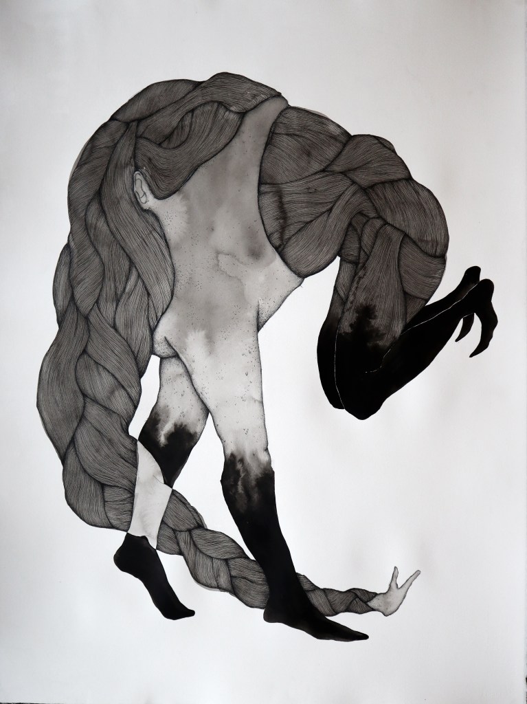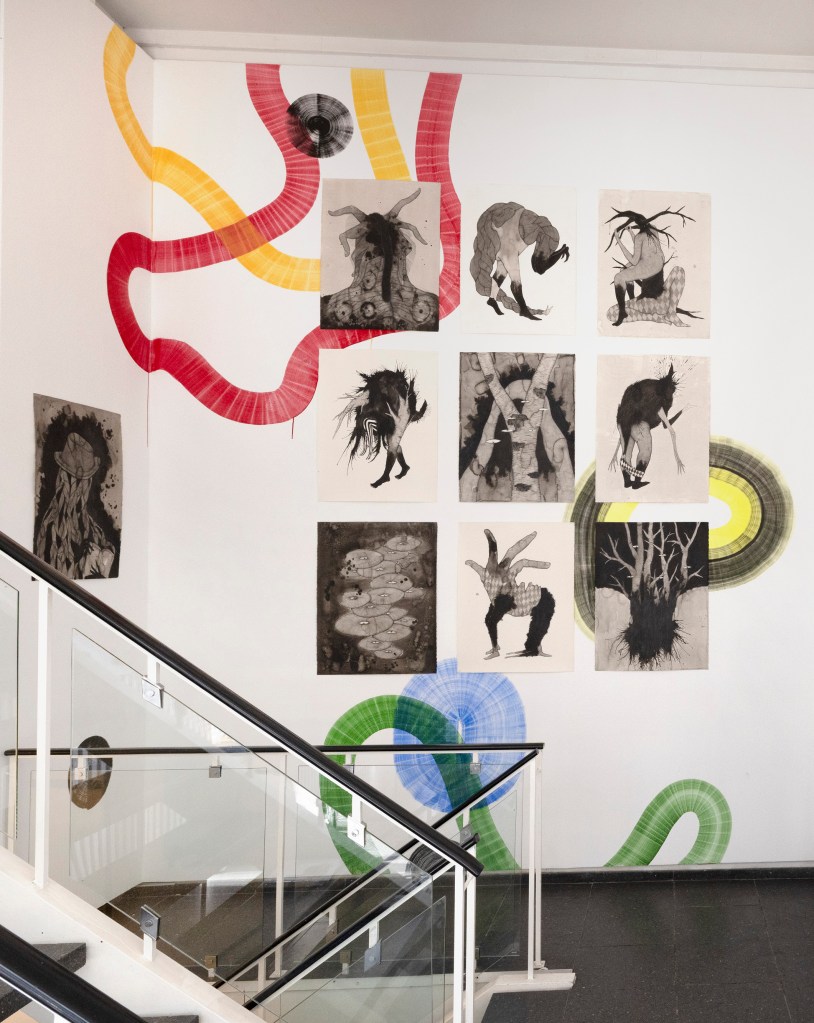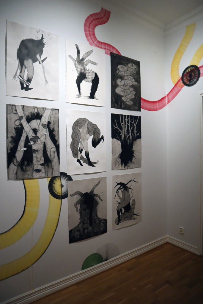 Drawings and exhibition views from the series Thread Carefully, created for a solo exhibition at Gallerie Käytävä at the Embassy of Iceland in Helsinki, nov. 2024-feb 2025. The work was also exhibited at Specta Gallery as part of the exhibition Creative Responses spring 2025. The drawings are ink on cotton paper, 56 x 76 cm, 2024. (Click on images for titles)