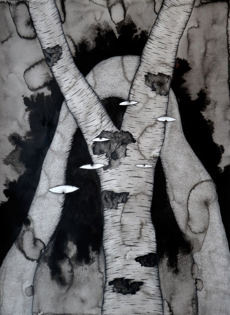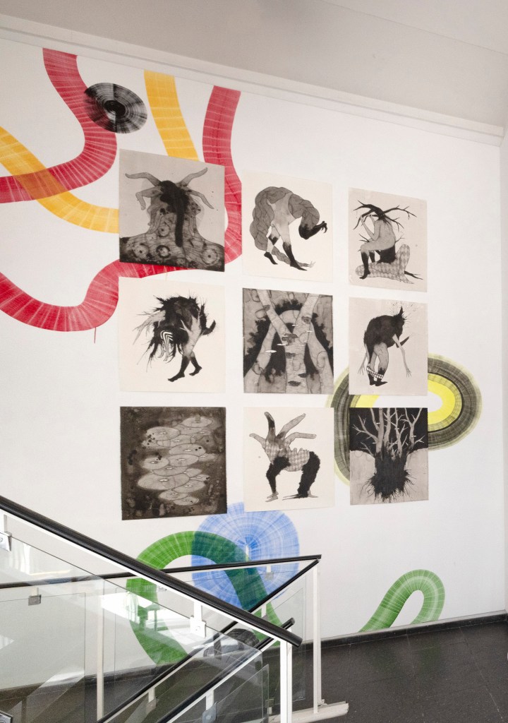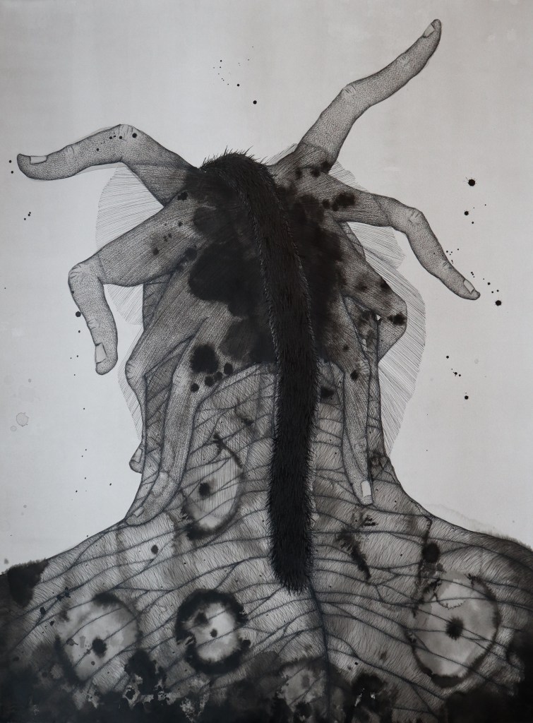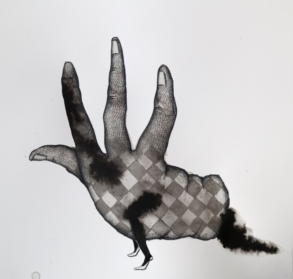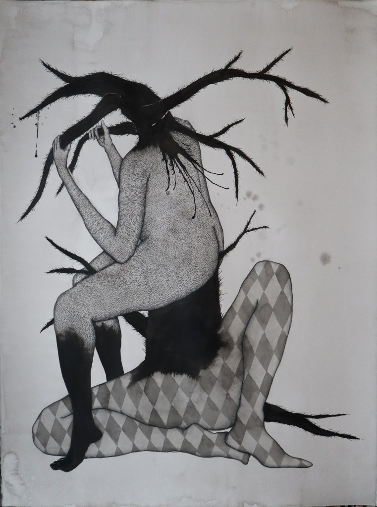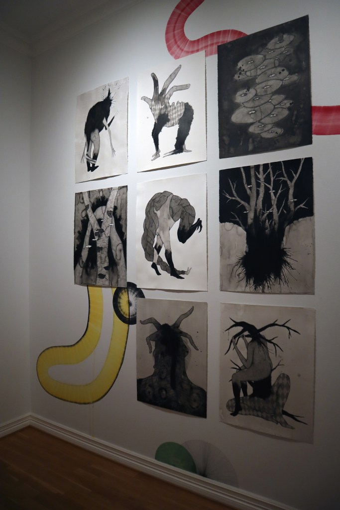 Drawings and exhibition views from the series Thread Carefully, created for a solo exhibition at Gallerie Käytävä at the Embassy of Iceland in Helsinki, nov. 2024-feb 2025. The work was also exhibited at Specta Gallery as part of the exhibition Creative Responses spring 2025. The drawings are ink on cotton paper, 56 x 76 cm, 2024. (Click on images for titles)