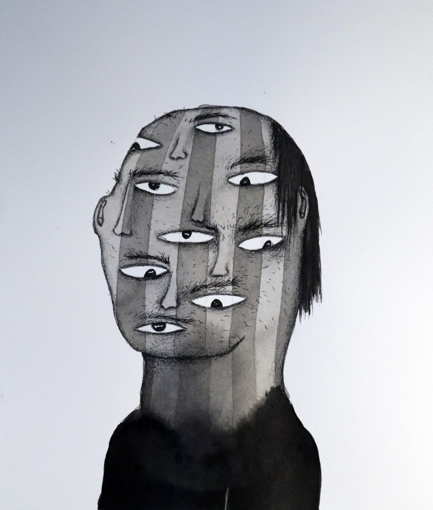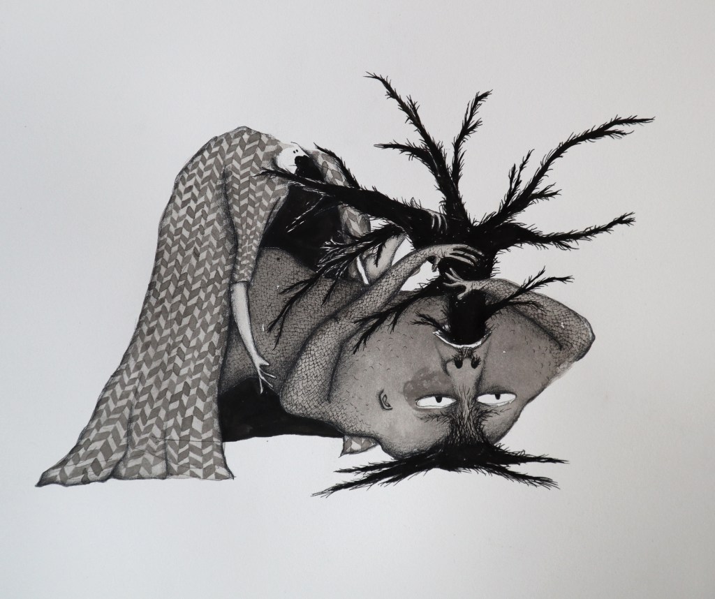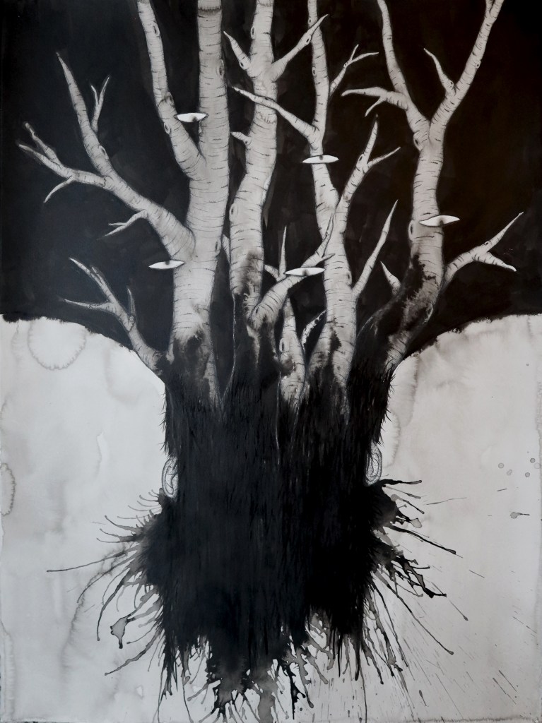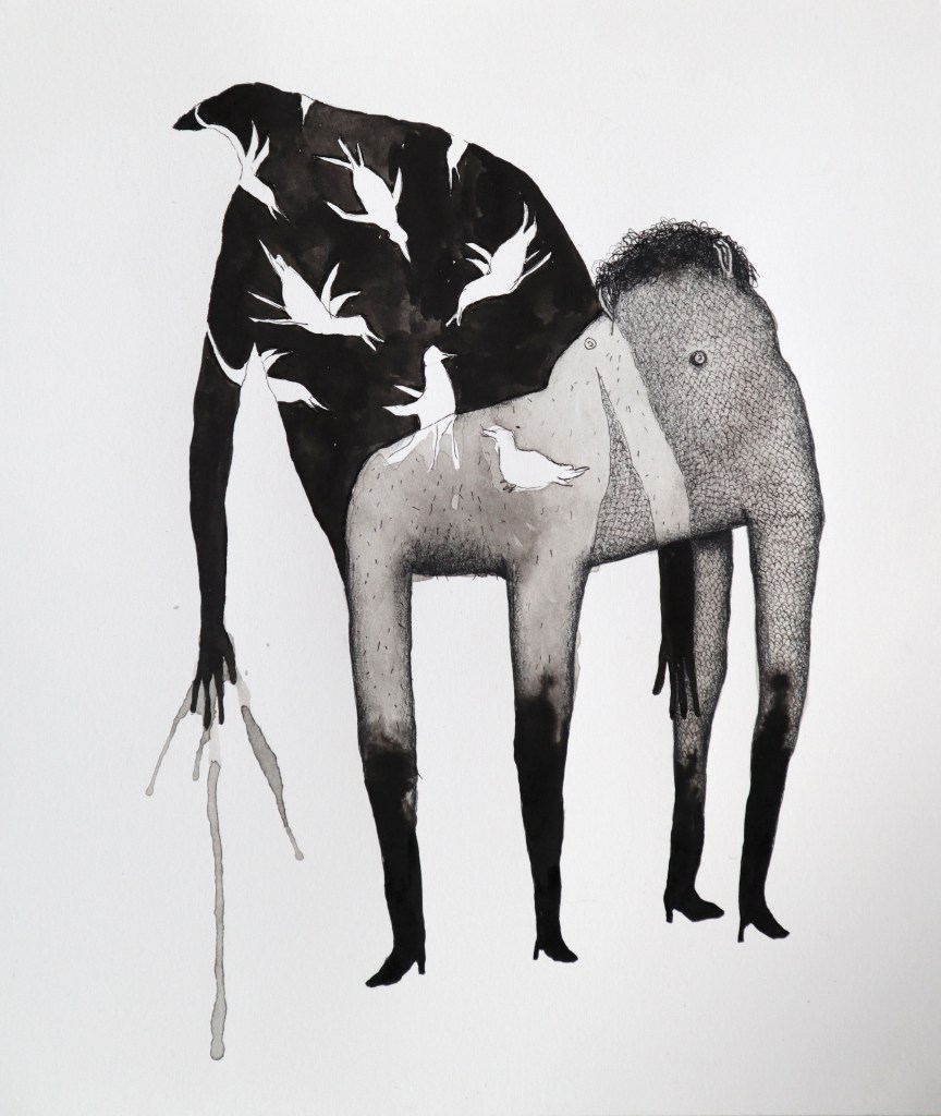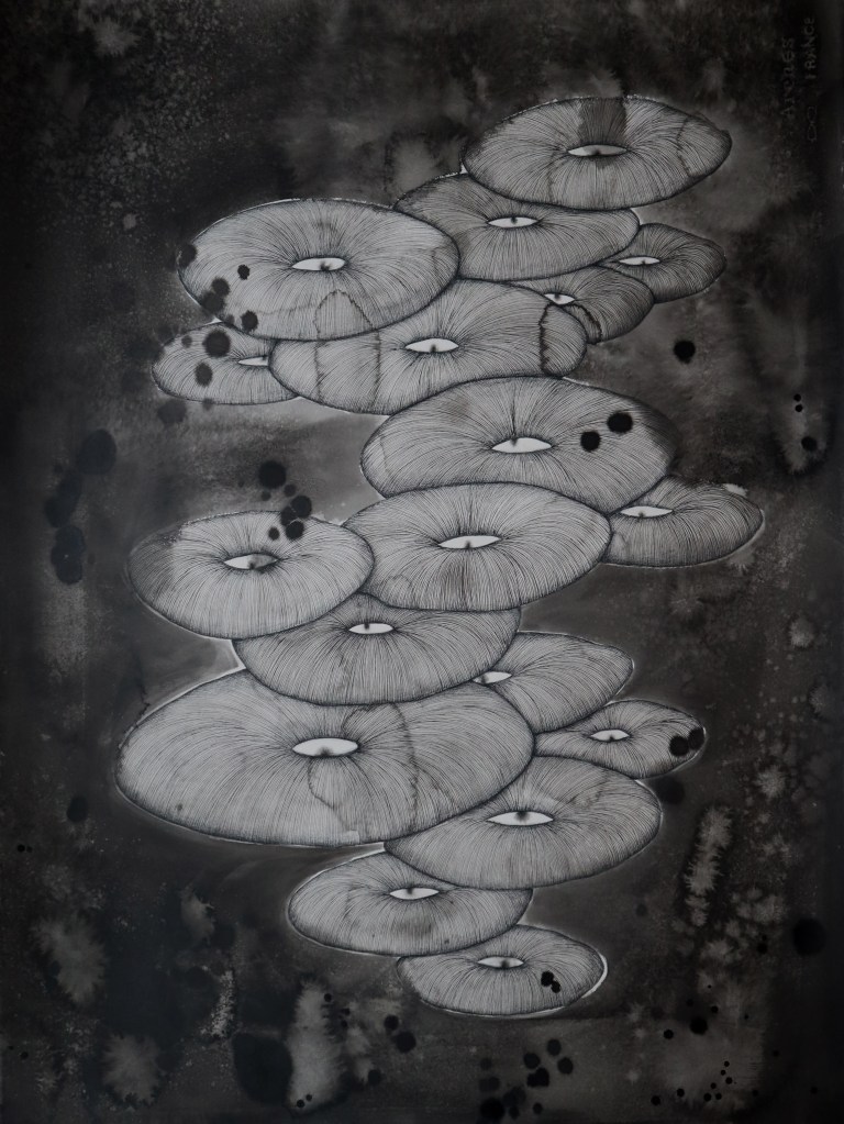 Selection of smaller ink drawings from 2024. Ink on cotton paper, irregular sizes ca.20-30 cm. (Click on images for titles)