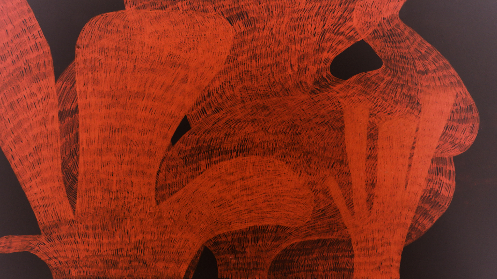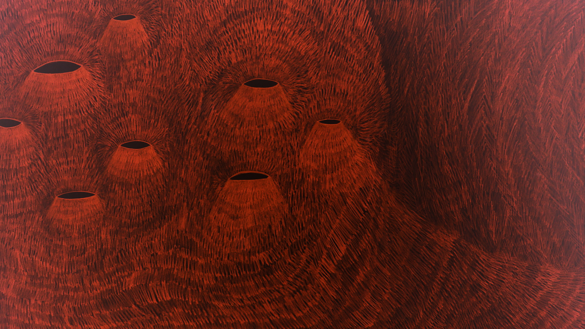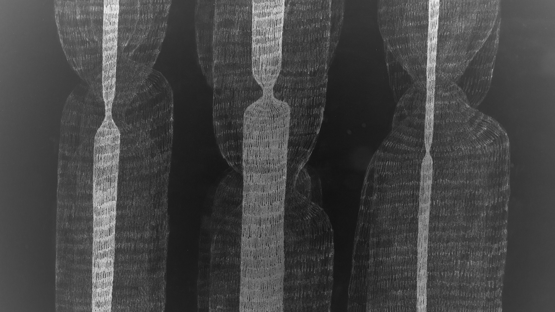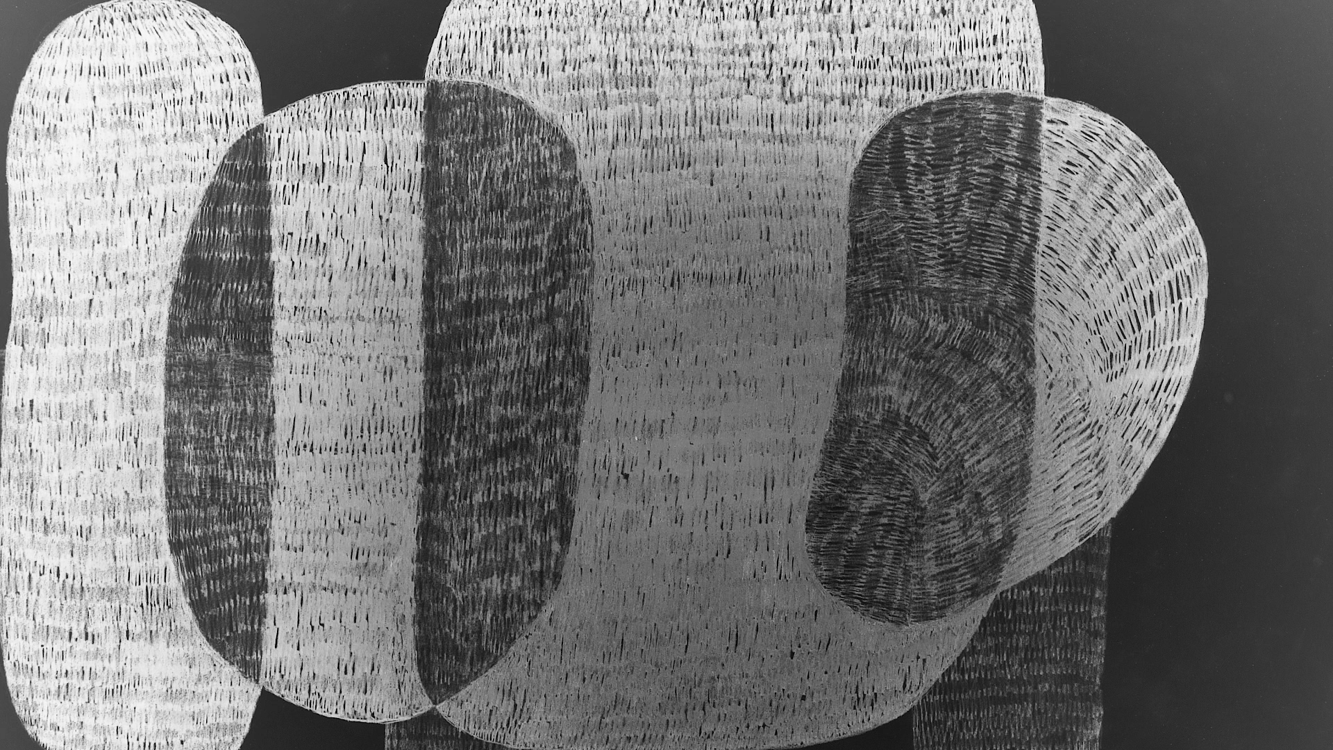 Circular Blackout is a video installation I created in collaboration with the electronic musician Mikael Lind in 2025. Together the video & sound circulate the immense space of the Tanks in Raufarhöfn, like an enormous clock, on a rotating platform. The work consists of 17 hand drawn stop motion videos. With a camera above the drawing table, I record the process of making a drawing, frame by frame, with pencils and coloured pencils on paper.