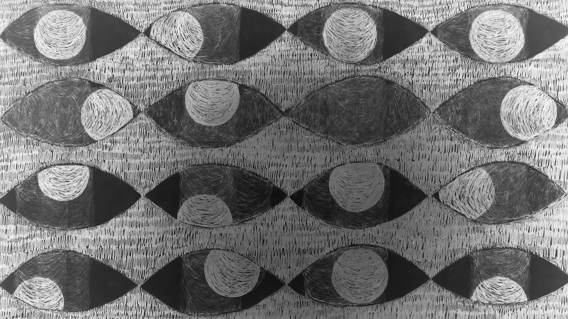 Still images / the 17 drawings that created the stop motion video Circular Blackout. Pencil and coloured pencil on paper, 2025.